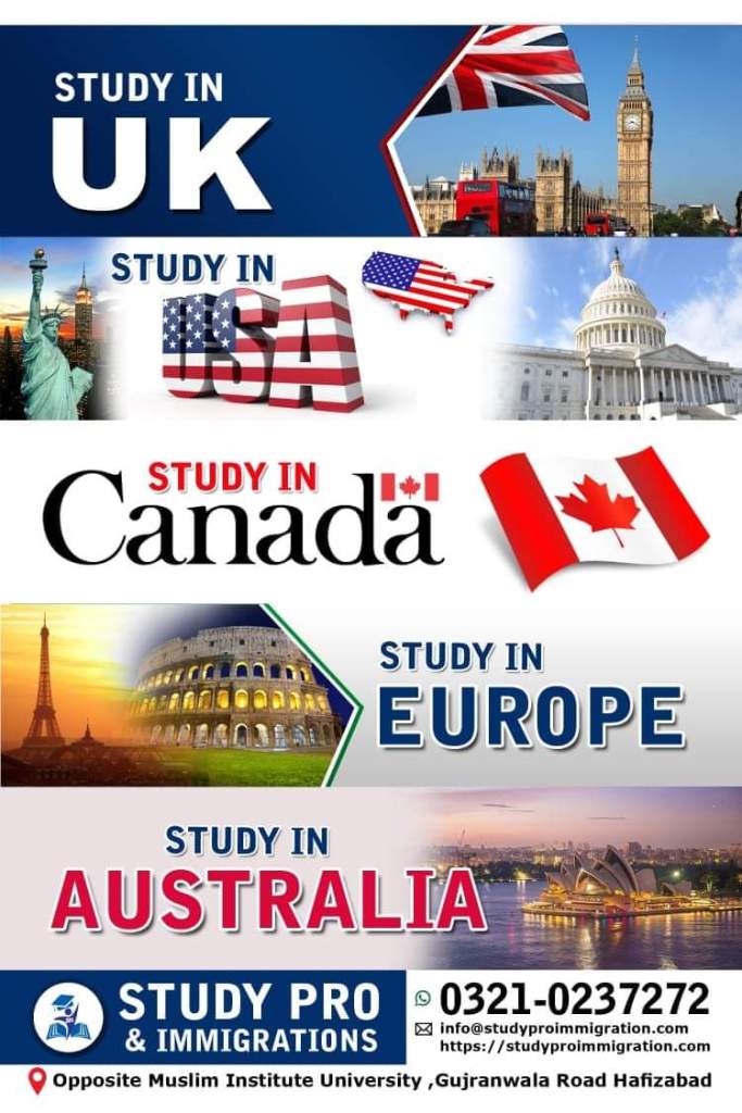 STUDY PRO AND IMMIGRATION is one of the best immigration consultant in Pakistan. With over a decade of successful experience, we specialize in various visa categories including , business migration visa, visitor visa, spouse visa, family visa, and corporate entrepreneur work visa.